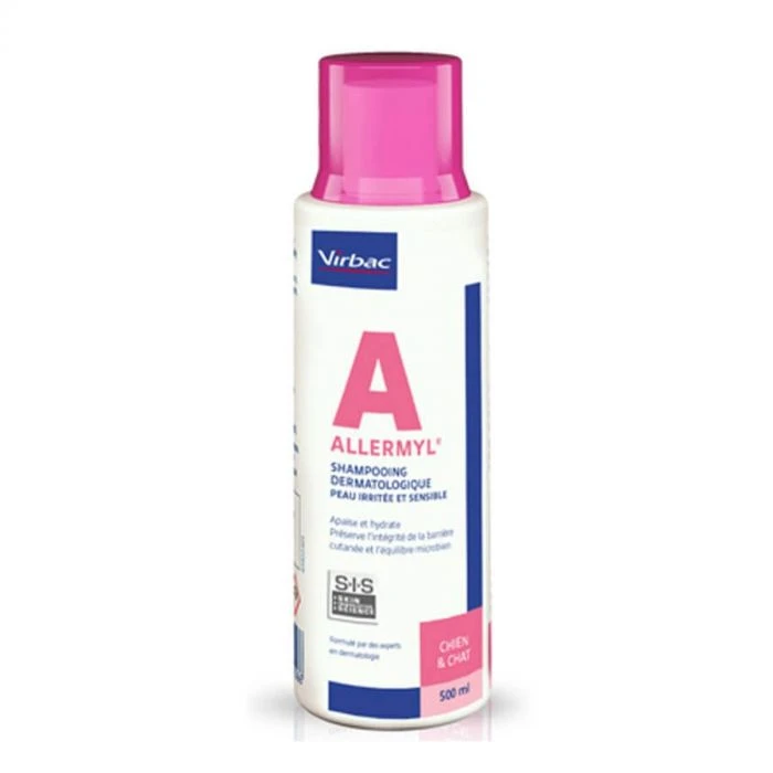 ALLERMYL shampoo deterge la cute ed è raccomandato come coadiuvante nel trattamento delle allergie cutanee (in particolare dermatite atopica e atopia) nel cane e nel gatto.