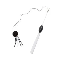 La corda si avvolge e si svolge lungo l’asta grazie ad un sistema motorizzato e abbassa e alza il giocattolo. Si attacca al supporto di tua scelta (tiragraffi, tavolo, ecc.) utilizzando il morsetto e la striscia velcro in dotazione.