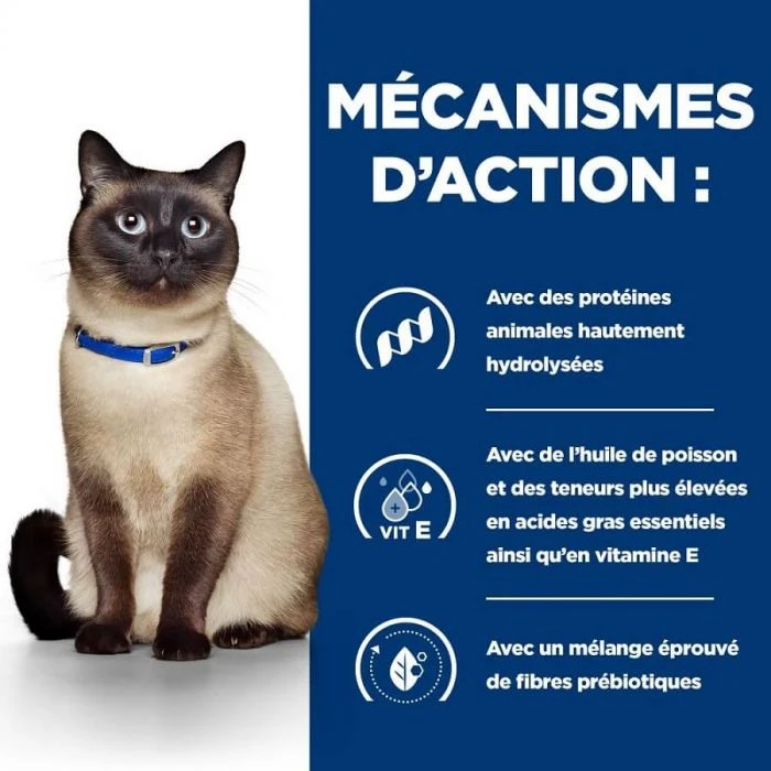 Hill’s Prescription Diet z/d AB+ è una nutrizione clinica appositamente formulata per ridurre i sintomi cutanei e gastrointestinali associati all’intolleranza alimentare nei gatti. Arricchito con la tecnologia degli ingredienti Hill’s ActivBiome+, una miscela esclusiva di prebiotici, clinicamente dimostrata per nutrire rapidamente il microbioma intestinale per sostenere la salute dell’apparato digerente e il benessere generale.