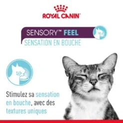 - ROYAL CANIN Sensory Feel è una formula molto attraente con una texture unica progettata per stimolare i sensi del tuo gatto attraverso la senazione alla masticazione